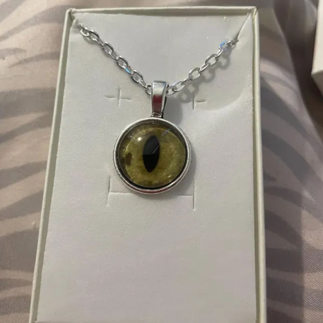 “¡Mi collar también resultó mejor de lo que esperaba! El ojo se ve increíble, muy buena calidad, la entrega también fue rápida.”